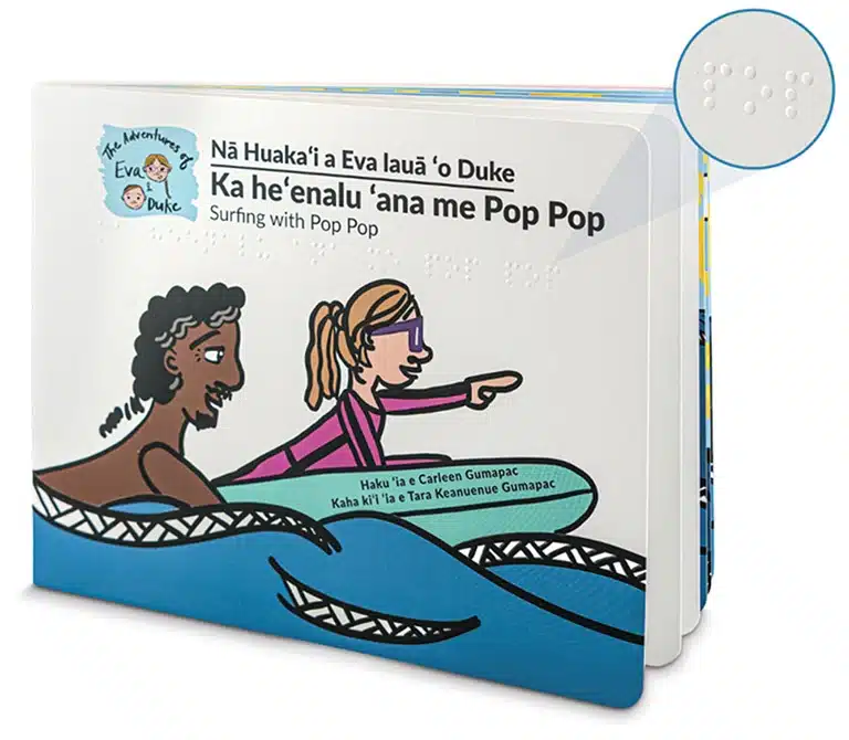 Surfing with Pop Pop was intentionally illustrated and designed to be engaging, tactile, and accessible for blind, low-vision, and Indigenous readers.