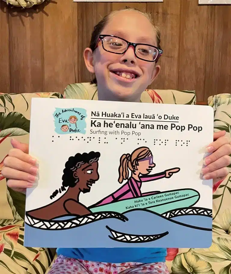 A QR code inside the book allows readers to listen to the story in Hawaiian or English, beautifully narrated by Tara’s blind daughter.